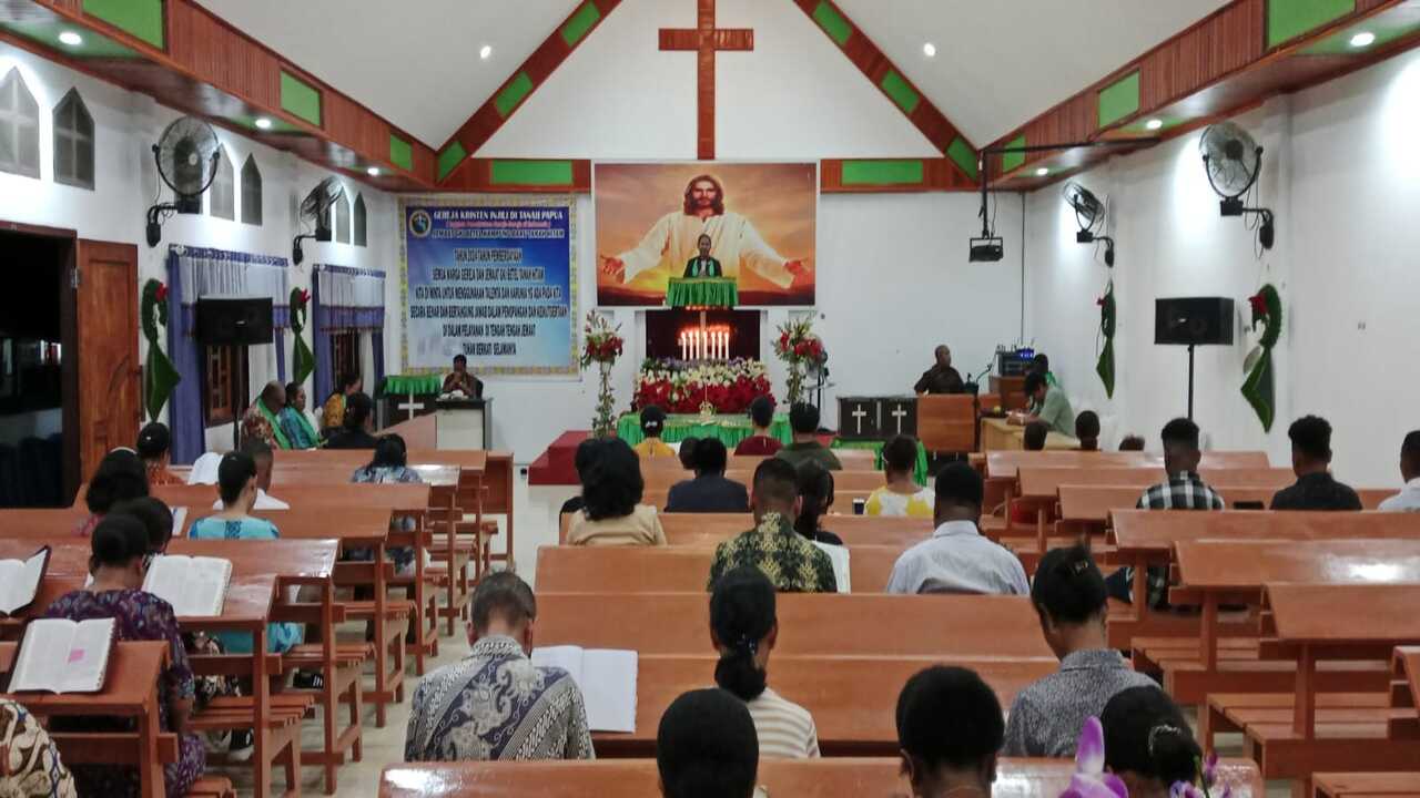Buletin Siloam , Jayapura - Penatua Anton Imbenai mengajak jemaat Gereja Kristen Injili (GKI) Eden Kopouw, Wae...